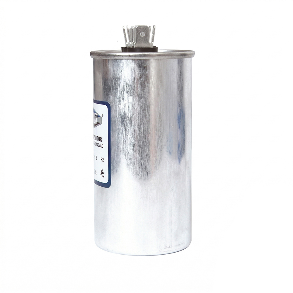 Capacitor de 40 Mf, Dual 440-370vac +-5%, 50/60Hz. El capacitor siempre está en el circuito cuando el motor esta trabajando. Del mismo modo, un capacitor es un dispositivo de almacenamiento de energía (electrones), ya que este se utiliza para aumentar el torque de arranque y el factor de potencia de los motores eléctricos.