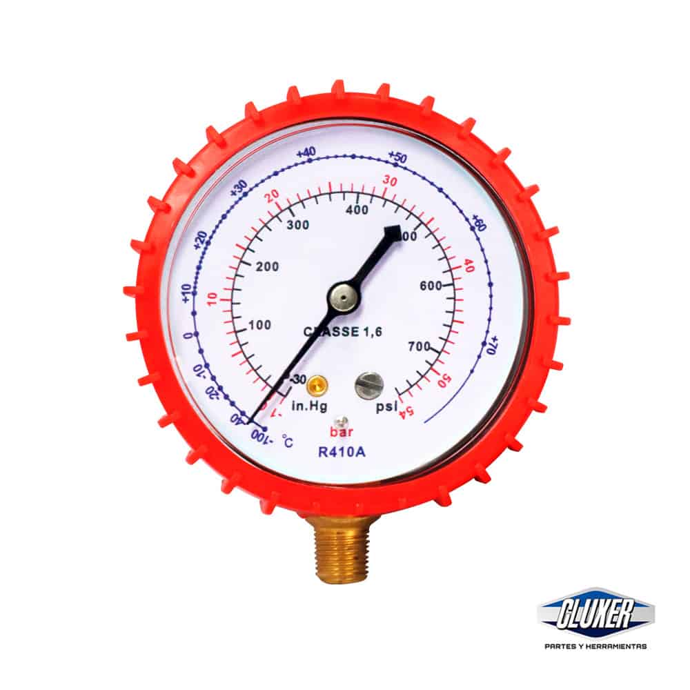 Manómetro de ALTA para Manifold R-410 es una herramienta esencial para profesionales del aire acondicionado y la refrigeración. Diseñado para medir con precisión la presión y temperatura en sistemas que operan con refrigerantes R-134a, R-22, R-404A y R-410A, este manómetro garantiza mediciones exactas y confiables.