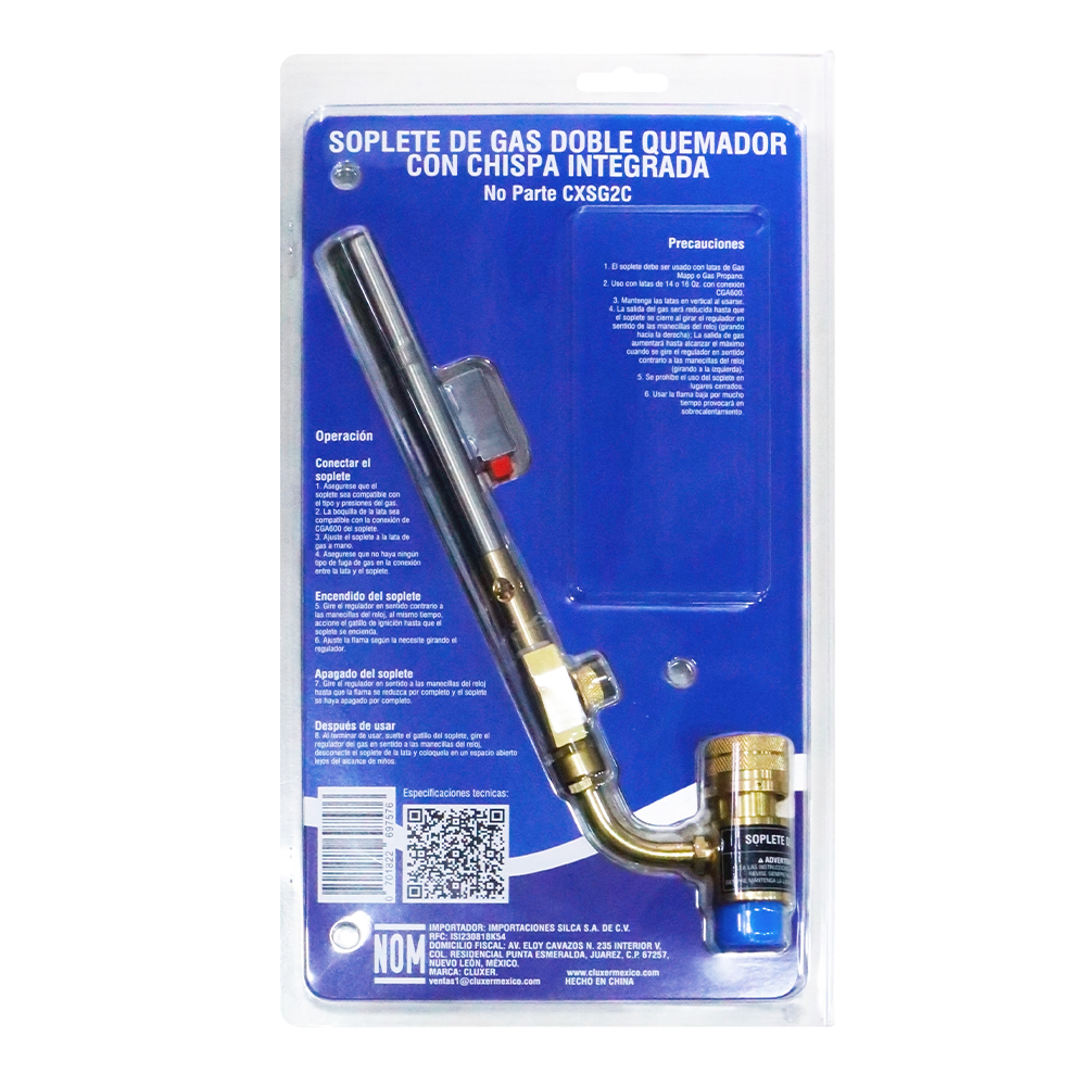 Soplete de Gas Doble Quemador con Chispa integrada Marca Cluxer, Modelo: CXSG2C